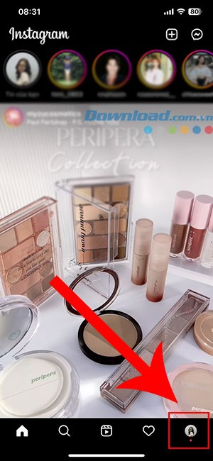 Bước 1: Khởi động ứng dụng Instagram và nhấn vào biểu tượng avatar của bạn để mở trang hồ sơ cá nhân.