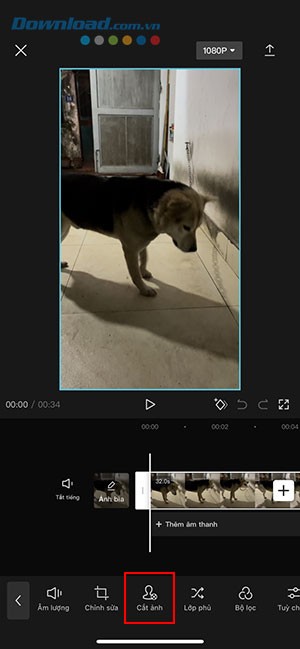 Bước 2: Trong giao diện chỉnh sửa của CapCut, chạm vào video. Sau đó, di chuyển để tìm và chọn tính năng Cắt ảnh.