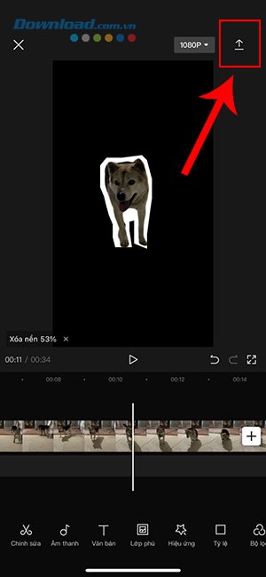 Bước 6: Cuối cùng, nhấn nút mũi tên ở góc trên cùng bên phải để xuất video đã chỉnh sửa vào thư viện ảnh của thiết bị.