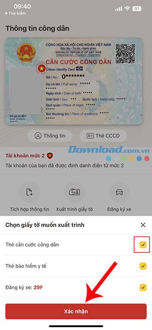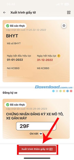 Nếu muốn xuất trình thêm giấy tờ, hãy chọn Xuất trình thêm giấy tờ và tiếp tục chọn giấy tờ cần hiển thị.