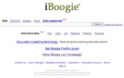 Có thể nhận định rằng cơ chế tìm kiếm của iBoogie có phạm vi hoạt động khá rộng lớn. iBoogie tổng hợp và trình bày kết quả từ nhiều nguồn khác nhau, bao gồm Web, Directory, Images và News, cùng nhiều định dạng khác.