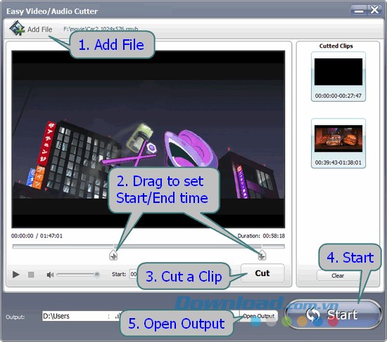 - Cắt video: Phần mềm cho phép trích xuất những đoạn audio ngắn từ các bộ phim yêu thích, đồng thời lưu chúng dưới định dạng MP3 mới.