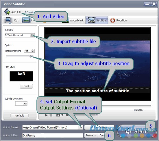 - Bước 5: Bắt đầu quá trình thêm phụ đề bằng cách nhấn nút "Start".