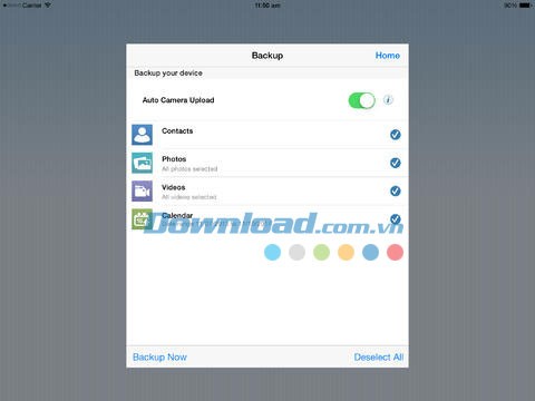 Để thực hiện sao lưu tiếp theo, hãy nhấn nút Backup từ màn hình chính và chọn các nội dung cần sao lưu.