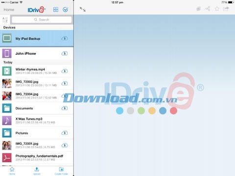 Những tính năng ưu việt của ứng dụng IDrive Online Backup dành cho iOS: