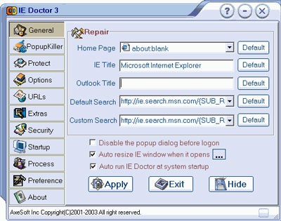 IE Doctor là công cụ được thiết kế để khắc phục, tối ưu hóa và bảo vệ các thiết lập Internet Explorer của bạn. Phần mềm này giúp ngăn chặn những can thiệp trái phép từ các hacker hoặc loại bỏ các cửa sổ popup quảng cáo gây phiền toái.
