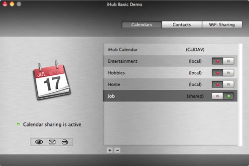 iHub Basic cho phép bạn dễ dàng chia sẻ lịch làm việc giữa các thiết bị. Chỉ với một thao tác click chuột, bạn có thể chọn lịch hiện tại và chia sẻ nó. Ngoài ra, bạn hoàn toàn có thể tạo một lịch mới và hiển thị nó trên tất cả các thiết bị Mac, iPhone, iPod touch và iPad.