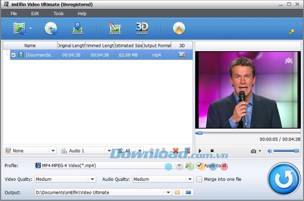 Rip và chuyển đổi một bộ phim DVD 2D thông thường sang video 3D. Bạn có thể thay đổi định dạng đầu ra sang AVI, MP4, MKV, FLV, v.v. nếu muốn.