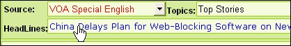 Để học tiếng Anh thông qua các bài học trực tuyến với giáo viên bản ngữ của đài VOA Hoa Kỳ, trong khung Source, hãy chọn nguồn dữ liệu là đài VOA Special English. Sau đó, chọn chủ đề mà bạn muốn luyện nghe, đọc trong mục Topics. Có rất nhiều chủ đề đa dạng và hấp dẫn như sức khỏe, y học, âm nhạc, thể thao, lịch sử, văn hóa, thắng cảnh,…