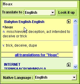 Chỉ cần gõ từ cần tra vào khung trống bên tay phải, chọn ngôn ngữ muốn dịch trong dòng Translate to, rồi nhấn Look it up để xem nghĩa. Nếu bạn nhấn chuột vào mục All translations for “…”, từ đó sẽ được dịch ra tất cả các ngôn ngữ phổ biến trên thế giới.