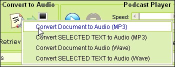 Để chuyển toàn bộ văn bản thành file MP3, chọn Convert Document to Audio. Để chuyển một phần đoạn văn bản, hãy chọn đoạn văn bản đó rồi nhấn nút Convert to Audio > Convert SELECTED TEXT to Audio (MP3).