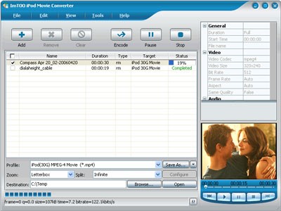 ImTOO iPod Movie Converter đóng vai trò là công cụ chuyển đổi chuyên dụng, giúp bạn dễ dàng chuyển đổi các định dạng video như AVI, MPEG, WMV, MOV, MP4, RM, RMVB, H.264, VOB, DivX sang định dạng tương thích với Video iPod, Video iPod 30GB/80GB và iPhone.