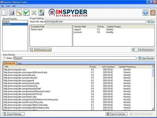 Inspyder Sitemap Creator 3.1.2 cho phép tạo ra các file XML sitemap chính xác chỉ trong tích tắc. Quá trình thực hiện vô cùng đơn giản: chỉ cần cung cấp địa chỉ URL và khởi động quá trình.