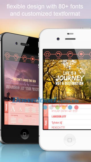 Bạn có thể tự tạo ra những cụm từ ý nghĩa hoặc sử dụng các trích dẫn chuyên nghiệp theo các mẫu có sẵn, kết hợp với hình nền được thiết kế bởi các họa sĩ nổi tiếng trên toàn thế giới.