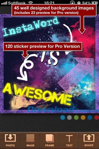- 45 hình nền đẹp mắt (trong đó có 23 hình nền được xem trước trong phiên bản Pro).