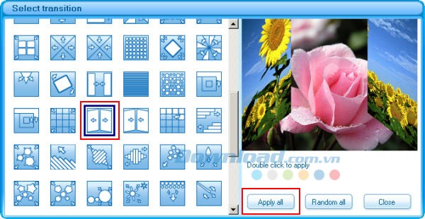 Hơn 70 hiệu ứng chuyển tiếp khác nhau được cung cấp, cho phép người dùng tùy biến trình chiếu theo sở thích.