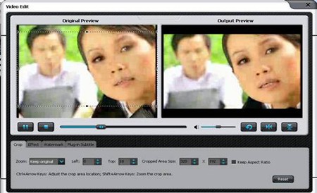 - Điều chỉnh Kích Thước Khung Ảnh: Thay đổi kích thước khung hình hiển thị bằng cách click chuột phải lên tập tin cần điều chỉnh và chọn Video Edit, sau đó chọn thẻ Crop. Vùng tỉ lệ thay đổi được xác định tại mục Cropped Area Size. Chọn Keep Aspect Ratio để giữ nguyên tỉ lệ khung hình gốc.