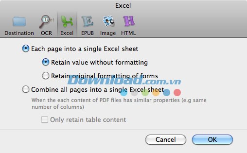 Kết hợp tất cả các trang vào một bảng tính Excel: Cho phép xuất nhiều file PDF vào một trang Excel duy nhất.