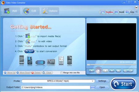 iTake Video Converter được biết đến rộng rãi như một chương trình chuyển đổi video hàng đầu, hỗ trợ nhiều định dạng khác nhau như MP4, FLV, WMA, 3GP, M4A, DivX, XviD, MOV, rm, rmvb, MPEG, VOB, WMV, AVI và nhiều định dạng khác.