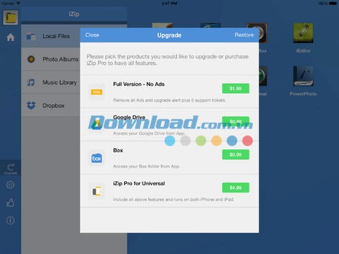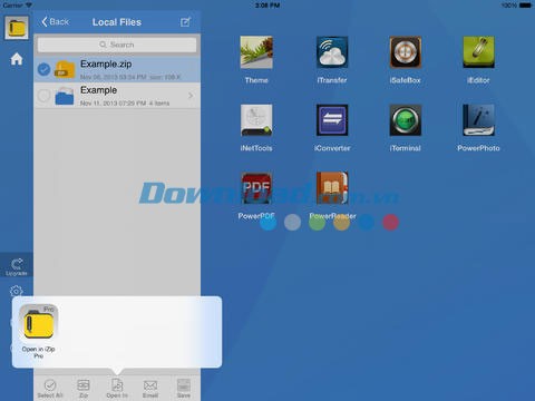 Phiên bản iZip Pro cho iPhone tích hợp đầy đủ các tính năng, nhưng chỉ tương thích với thiết bị iPhone.