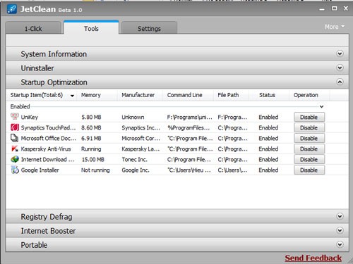 Phần mềm hỗ trợ tăng tốc độ khởi động máy tính bằng cách quản lý các ứng dụng khởi động cùng Windows, tắt những ứng dụng không cần thiết để cải thiện tốc độ hệ thống.