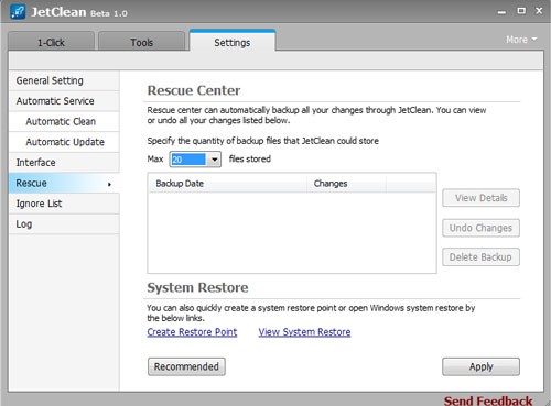 Chỉ với một thao tác nhấp chuột duy nhất, JetClean sẽ quét và loại bỏ các tập tin rác tích tụ trong hệ thống, mang lại không gian lưu trữ rộng rãi hơn.