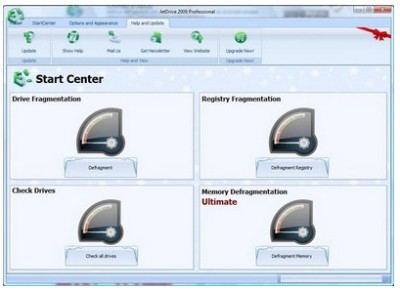 - : Thực hiện chống phân mảnh cho đĩa cứng (bằng cách nhấn vào nút Defragment). Với công nghệ JetSmart, Jet Drive không chỉ giúp quá trình chống phân mảnh hiệu quả hơn 20% so với phương pháp thông thường của Windows, mà thời gian thực hiện cũng được rút ngắn đáng kể.- : Chống phân mảnh cho registry của hệ thống (nhấn vào nút Defragment Registry).- : Kiểm tra thông tin của đĩa cứng, như các phân vùng, dung lượng trống, dung lượng đã sử dụng… từ đó phát hiện ra các lỗi có thể xảy ra trên đĩa cứng và tiến hành sửa chữa chúng (nếu các lỗi không quá nghiêm trọng).