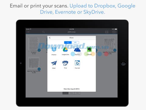 Sau khi scan, bạn có thể lưu các bản scan dưới dạng file PDF hoặc file nén ZIP vào các dịch vụ lưu trữ đám mây phổ biến như Dropbox , Google Drive , OneDrive hay Evernote .