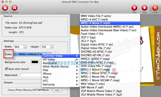 Phần mềm này cung cấp khả năng chuyển đổi file SWF sang hầu hết các định dạng video thông dụng trên nền tảng Mac OS, bao gồm cả Mountain Lion.