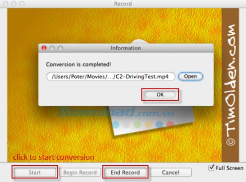Nhấn nút "" để mở cửa sổ Record. Tiếp theo, chọn "" để bắt đầu quá trình chuyển đổi SWF sang video trên hệ điều hành Mac OS X.