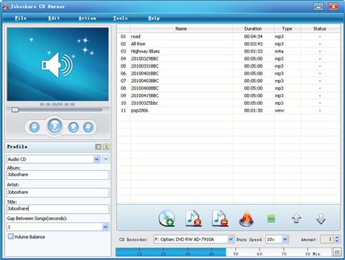 Joboshare CD Burner là một giải pháp mạnh mẽ để lưu giữ những khoảnh khắc âm nhạc đáng nhớ. Phần mềm hỗ trợ ghi trực tiếp các file video và audio sang đĩa Audio CD, MP3 CD và WMA CD.
