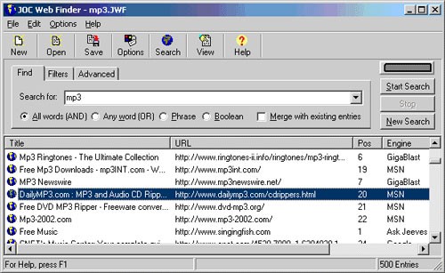 JOC Web Finder cung cấp cho người sử dụng khả năng truy vấn thông tin đồng thời trên bảy công cụ tìm kiếm khác nhau.