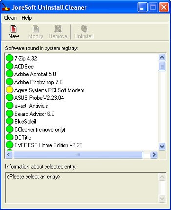 Mặc dù sở hữu nhiều tính năng từ cơ bản đến nâng cao, JoneSoft UnInstall Cleaner vẫn đảm bảo sự đơn giản và dễ dàng khi sử dụng. Ngay khi khởi động, chương trình sẽ hiển thị danh sách các phần mềm và thành phần có thể gỡ bỏ khỏi máy tính, được cập nhật từ registry.