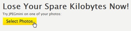 Sau đó, chọn Select Photos để tải hình ảnh lên JPEGMini. Thời gian tải lên sẽ phụ thuộc vào kích thước của file ảnh.