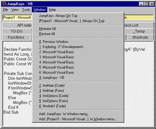 JumpKeys Pro mang đến khả năng điều khiển tức thì đối với các cửa sổ đang mở trên màn hình. Một trong những tính năng nổi bật của JumpKeys là khả năng gắn thẻ nhanh chóng cho tối đa 9 cửa sổ được sử dụng thường xuyên, cho phép lựa chọn bằng các phím số trên bàn phím.