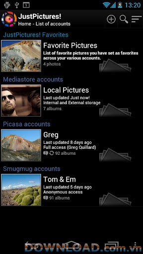 JustPictures! for Android là một ứng dụng được thiết kế dành riêng cho hệ điều hành Android, cung cấp các tính năng duyệt, chia sẻ, tải lên và đồng bộ hóa ảnh một cách hoàn toàn miễn phí.
