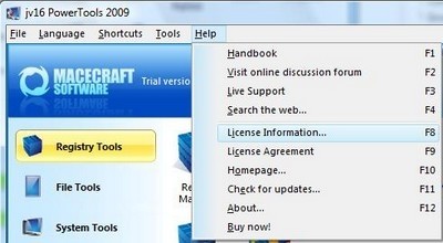 Để kích hoạt bản quyền, tại giao diện chính, chọn Help -> License Information.