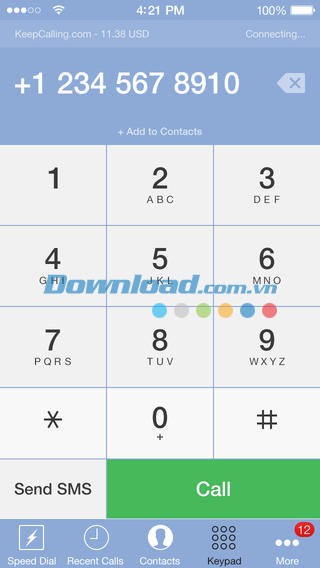 KeepCalling for iOS mang đến cho người dùng các thiết bị iPhone, iPad hoặc iPod Touch một dịch vụ gọi điện và nhắn tin quốc tế với giá cả phải chăng, đồng thời đảm bảo chất lượng đường truyền cao.