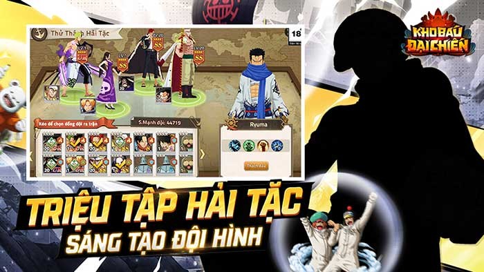 Trong Kho Báu Đại Chiến, bạn sẽ tập hợp những đồng minh đáng tin cậy, xây dựng một đội hình mạnh mẽ và đối mặt với mọi thử thách, đánh bại những đối thủ hùng mạnh trên con đường chinh phục danh hiệu Vua Hải Tặc.