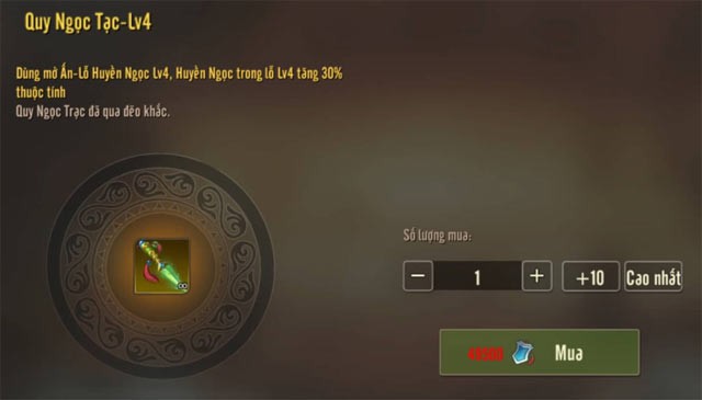 - Bày bán vật phẩm mới Quy Ngọc Tạc - Level 4 tại Tiệm Gia Tộc, sử dụng giúp tăng 30% thuộc tính Huyền Ngọc.