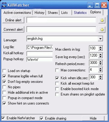 Hơn nữa, KillWatcher còn hỗ trợ ghi lại toàn bộ các hoạt động của người dùng vào file log. Tính năng này giúp bạn quản lý tài nguyên chia sẻ một cách hiệu quả và toàn diện hơn.