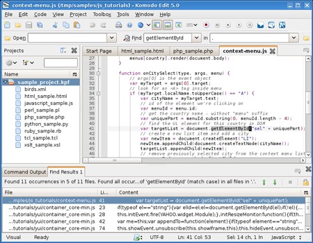 Komodo Edit nổi bật với khả năng tự động hoàn thành cú pháp hiệu quả, bao gồm cả việc kiểm tra cú pháp PHP tương tự như trong Visual Studio. Khi làm việc với nhiều file cùng lúc, giao diện tab giúp quản lý và chuyển đổi giữa các file một cách thuận tiện.
