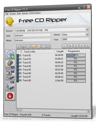 Với giao diện thân thiện và các tính năng mạnh mẽ, Koyote Free CD Ripper là lựa chọn lý tưởng cho những ai muốn số hóa bộ sưu tập CD nhạc của mình một cách nhanh chóng và dễ dàng.