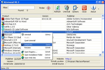 KUninstall còn cho phép bạn đổi tên chương trình nếu cần thiết. Chức năng Detail Info cung cấp những thông tin chi tiết về chương trình mà hệ thống Windows đã lưu trữ.