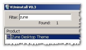 Nếu danh sách quá dài và gây khó khăn trong việc tìm kiếm, bạn có thể tận dụng tính năng bộ lọc (Filter) ở phía trên giao diện. Nhập tên của chương trình bạn muốn gỡ bỏ vào ô tìm kiếm. Hình ảnh minh họa dưới đây cho thấy kết quả tìm kiếm khi nhập từ khóa "Zune", và chương trình đã nhanh chóng xác định được ứng dụng tương ứng.