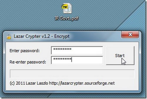 Một hộp thoại sẽ xuất hiện, yêu cầu người dùng nhập mật khẩu để bảo vệ tập tin. Sau khi nhập, chỉ cần nhấp vào nút Start để bắt đầu quá trình mã hóa.