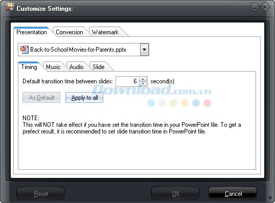 - Audio - Chọn bỏ qua các tập tin âm thanh có trong trình chiếu PowerPoint đã chọn hoặc tất cả các file PPT.