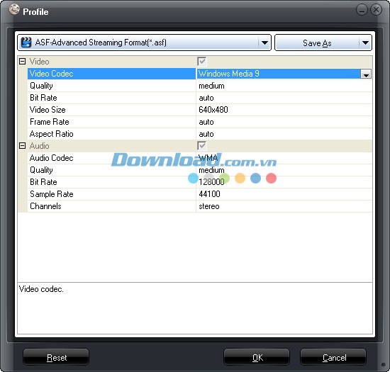 Các thông số có thể điều chỉnh bao gồm: codec, tốc độ bit, tỷ lệ khung hình, tỷ lệ video, kênh âm thanh và nhiều hơn nữa. Bạn có thể lưu các thiết lập tùy chỉnh của mình dưới dạng cấu hình mới trong thư mục “User Defined” để sử dụng cho các lần sau.