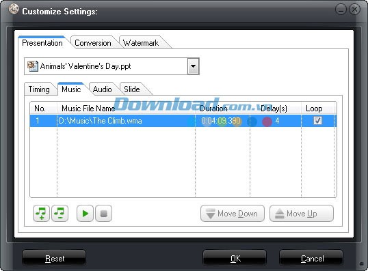 Tính năng Music của Leawo PowerPoint to Video Pro cho phép bạn thêm nhạc nền vào video đầu ra.