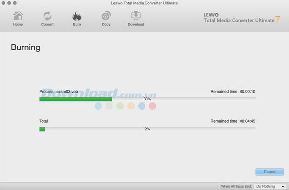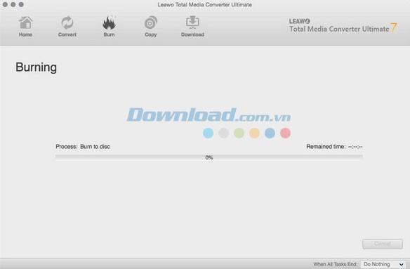 Cuối cùng, nhấn nút Burn nằm ở phía dưới thanh công cụ bên phải để bắt đầu quá trình ghi video lên đĩa Blu-ray/DVD.
